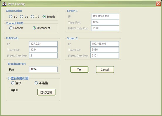 然后勾选 Broadcast(广播) 复选框,设置广播端口,点击 Yes(确定) 按钮。默认端口为 1234。