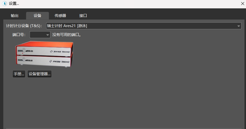 软件连接,设置 SwissTiming Ares21 可用的串口号。