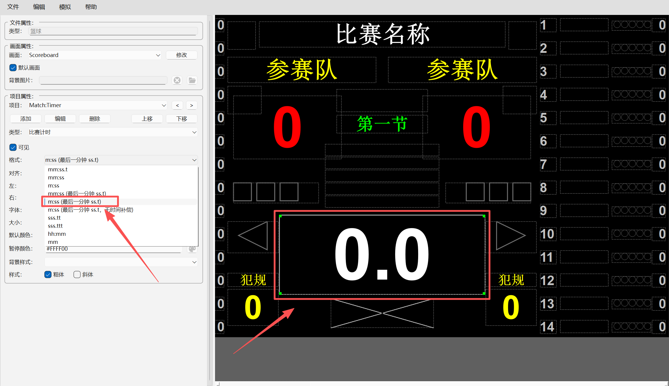 选中比赛计时,将格式改为m:ss(ss.t on last minute),在完成修改后,保存修改布局并重新打开终端程序中的比赛。