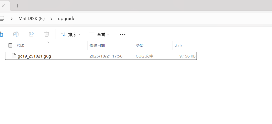 在U盘中创建一个名为upgrade 的子目录。将gc19.gug升级包复制到此目录中。