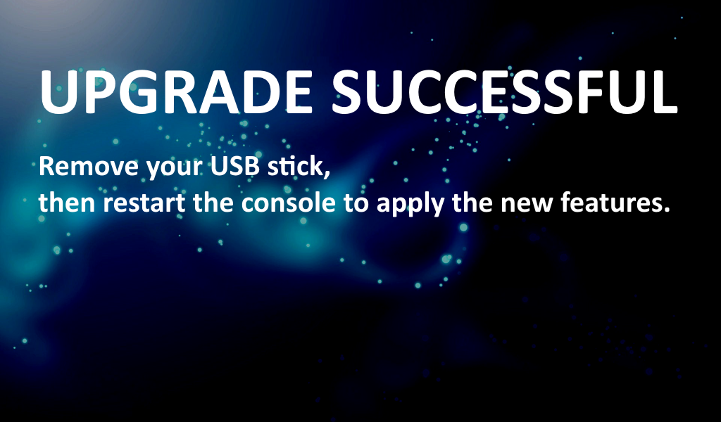 请打开“KS-GC19 控制台”并将U盘插入。屏幕显示以下画面表示升级完成,关机并重启。