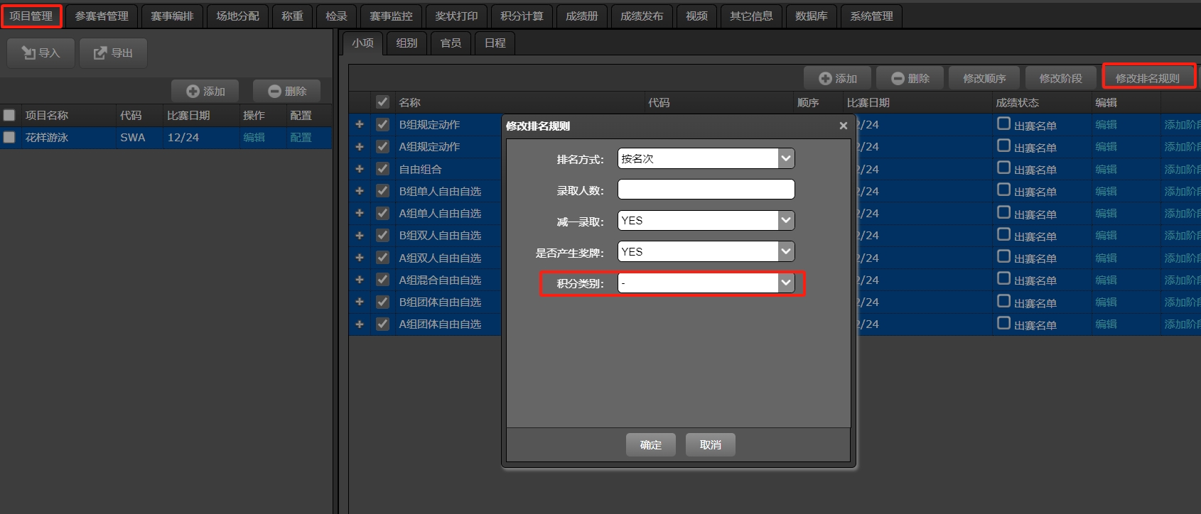 点击积分计算,然后点击左侧边栏中的比赛项目。