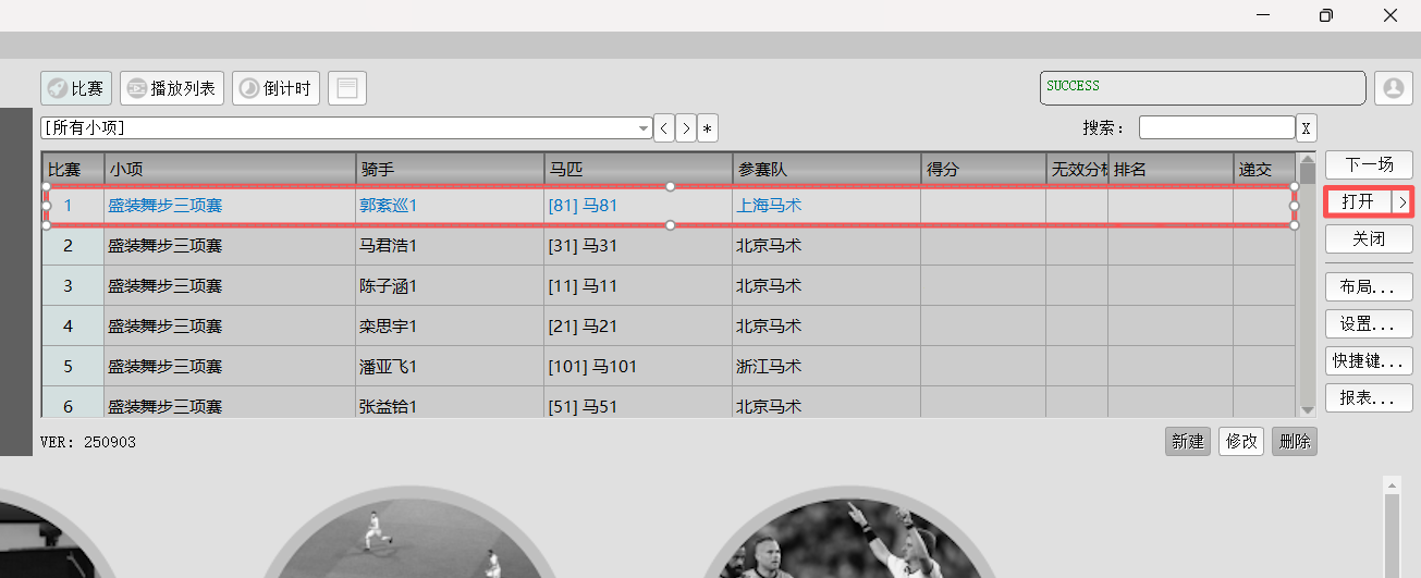 请确保您加载的科目表与当前小项的“盛装舞步类型”相匹配。例如“儿童科目”,“自选科目”等。